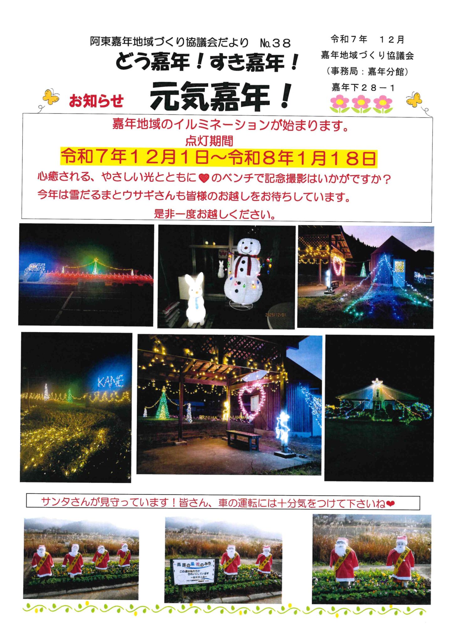 阿東の嘉年地域でイルミネーションが始まります。