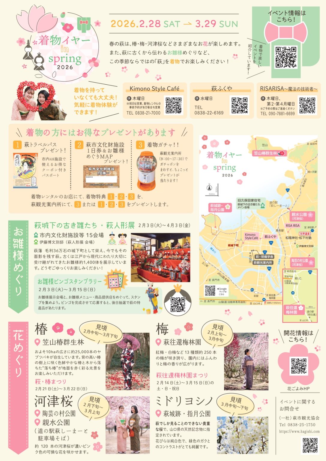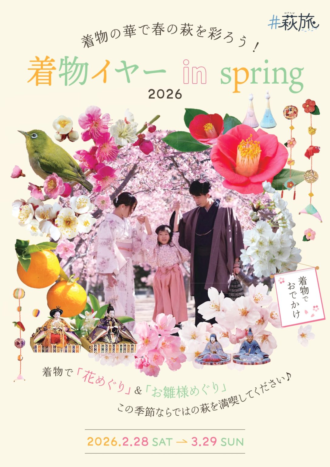 また、萩に古くから伝わるお雛様めぐりなど、この季節ならではの「萩」を着物でお楽しみください!
