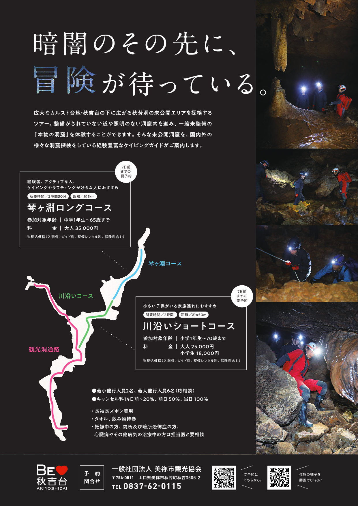 - 2名から6名 19歳~75歳28,000円 7歳~18歳20,000円 1名様参加の方は10,000円追加料金がかかります。 (税込価格・入洞料・ガイド料・装備レンタル料・環境保全協力金・保険料含む)