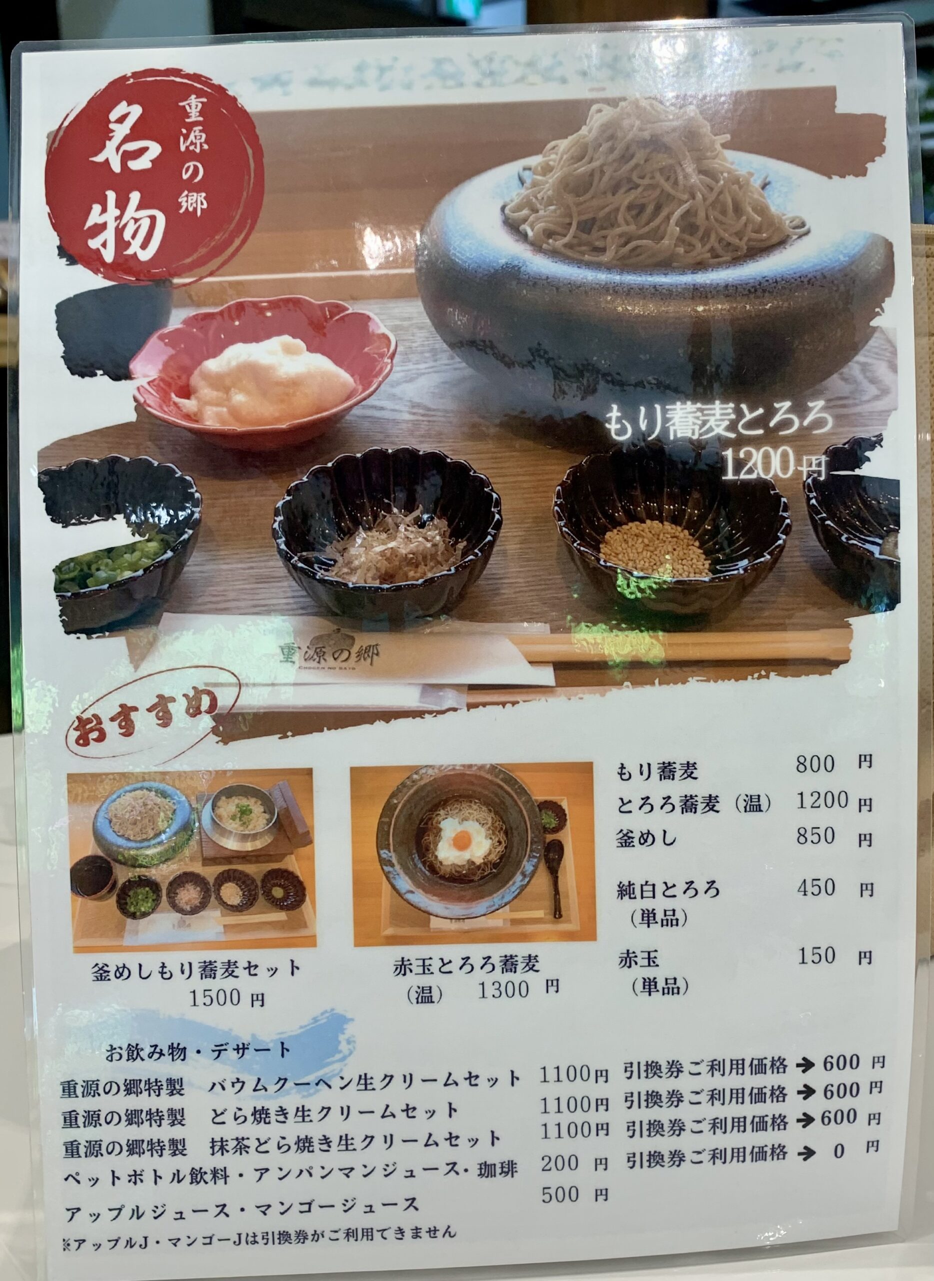 名物のお蕎麦を中心に、デザートメニューがあったり、お子様向けのジュースもあったりと充実しています。