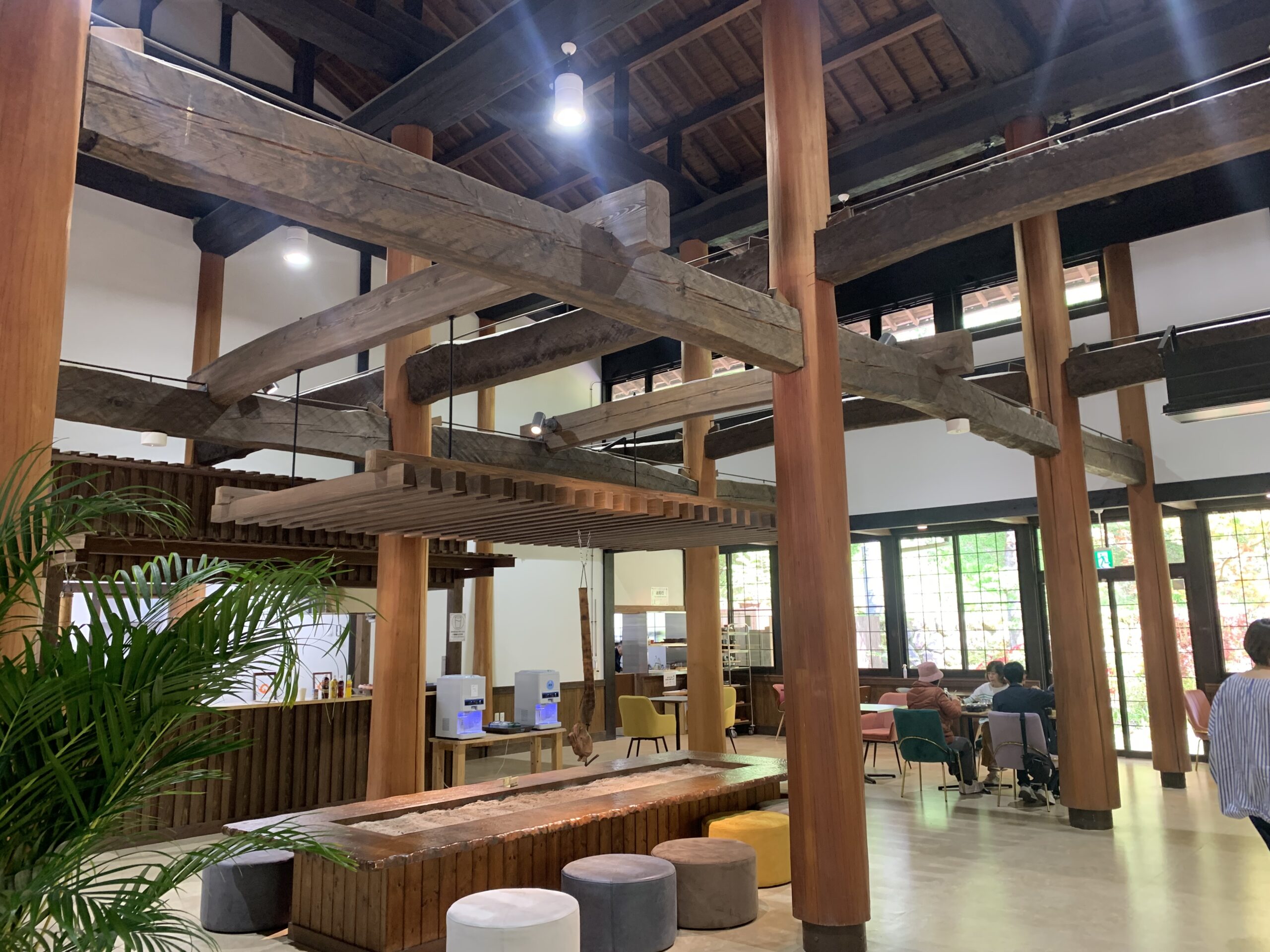 太い梁と柱が印象的な館内は、木の持つ温もりがほっこり感を演出します。