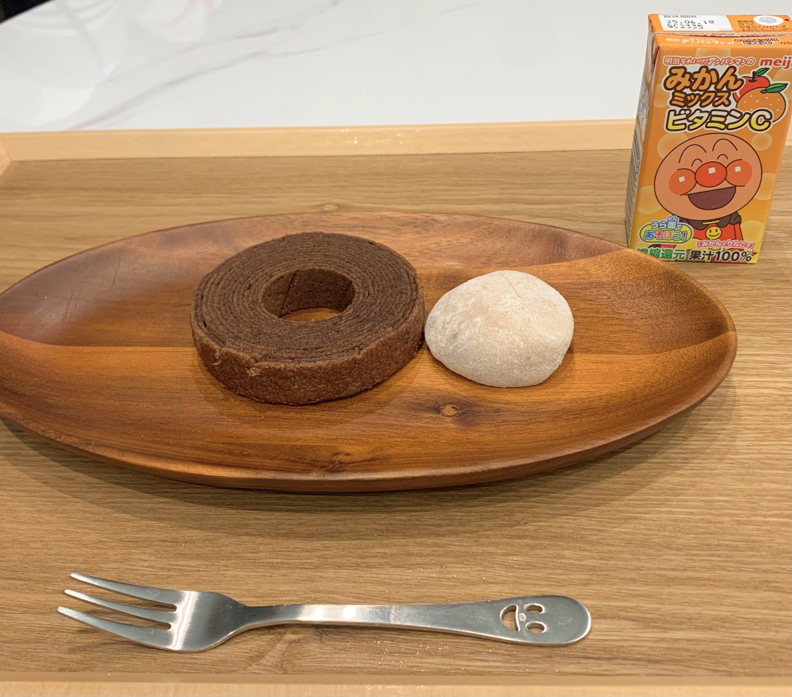 デザートメニューからは、バウムクーヘン生クリームセットをチョイス。