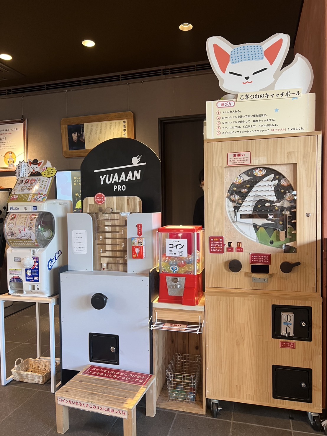 なんと足湯に浸かりながら小狐モチーフのデザートや山口の地酒が味わえるカフェが利用ができたり、湯田温泉にゆかりの詩人中原中也をモチーフとしたレトロゲームなどで遊べたり。