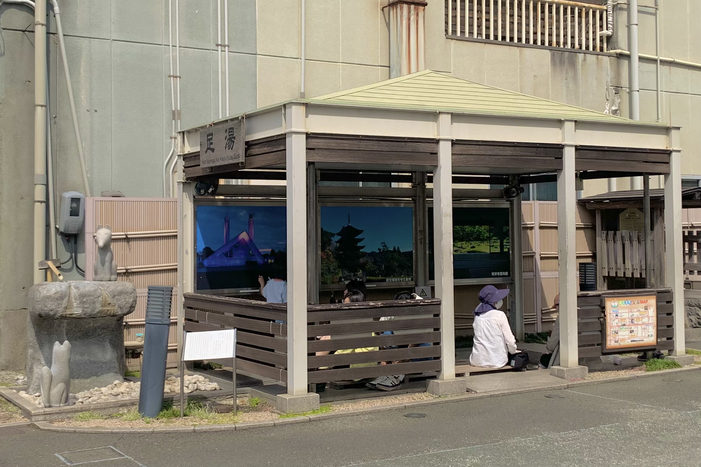 かつて商店街として賑わいを見せた湯の町通りに面した足湯。