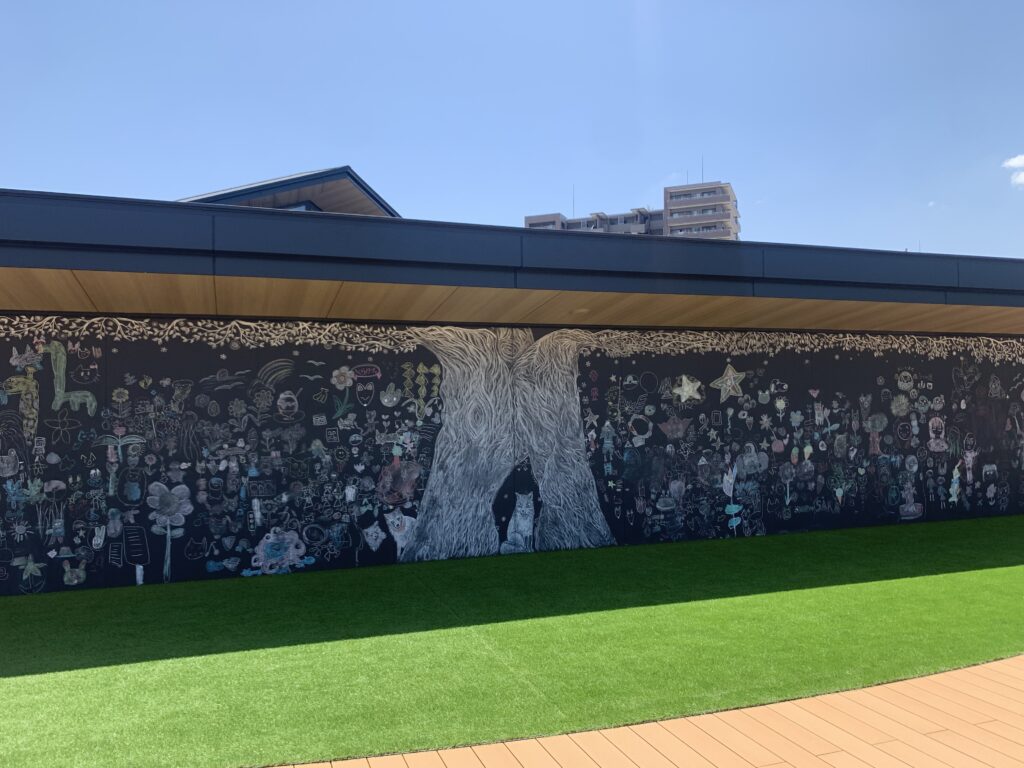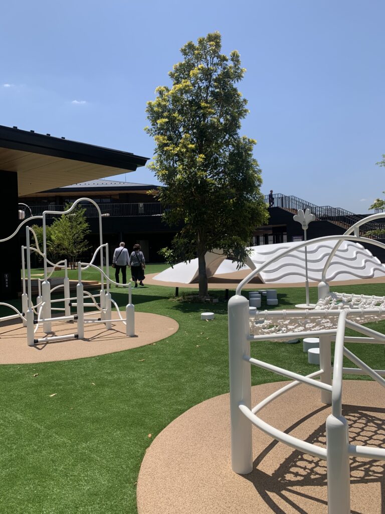 すぐそばには芝生広場や遊具もあり、みんなが楽しめる居心地の良い空間です。