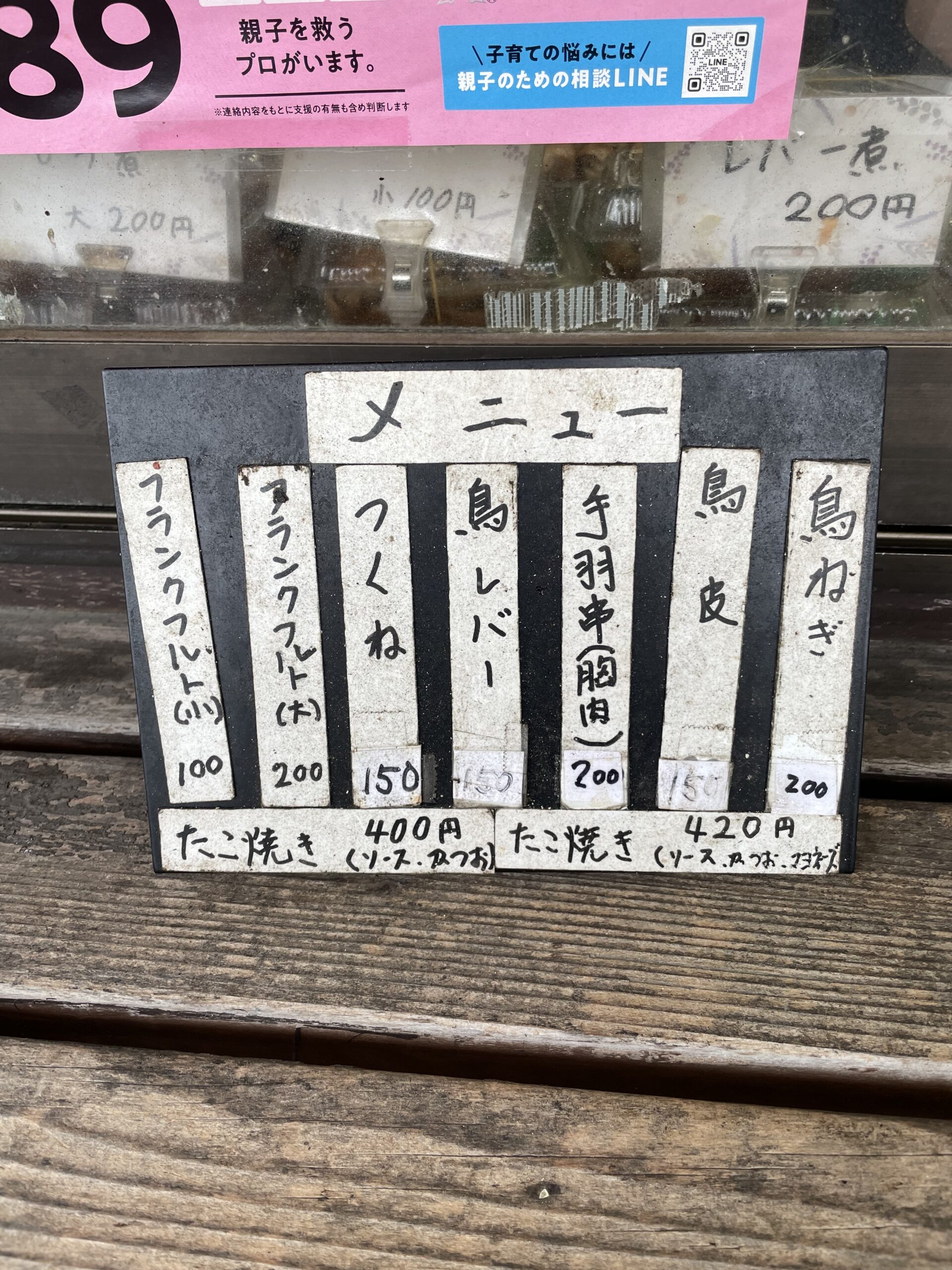 たこ焼きやモツ煮もあり、徳地グルメを楽しめます。
