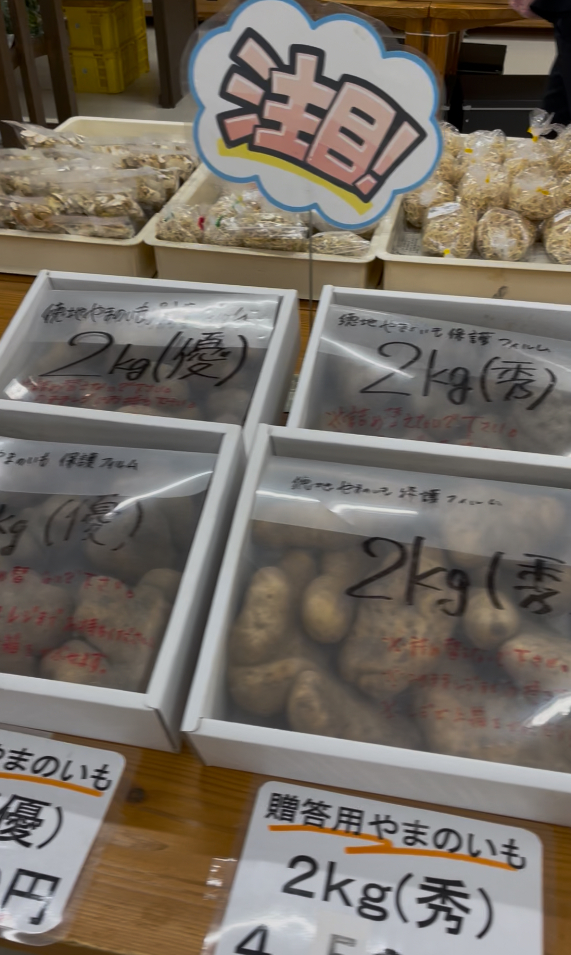 11月〜3月ごろには徳地が誇るやまのいもがずらりと陳列。