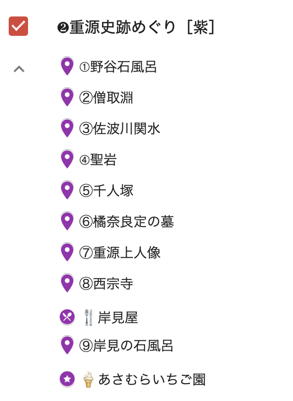 徳地のおすすめ観光スポットが一覧で表示されます。