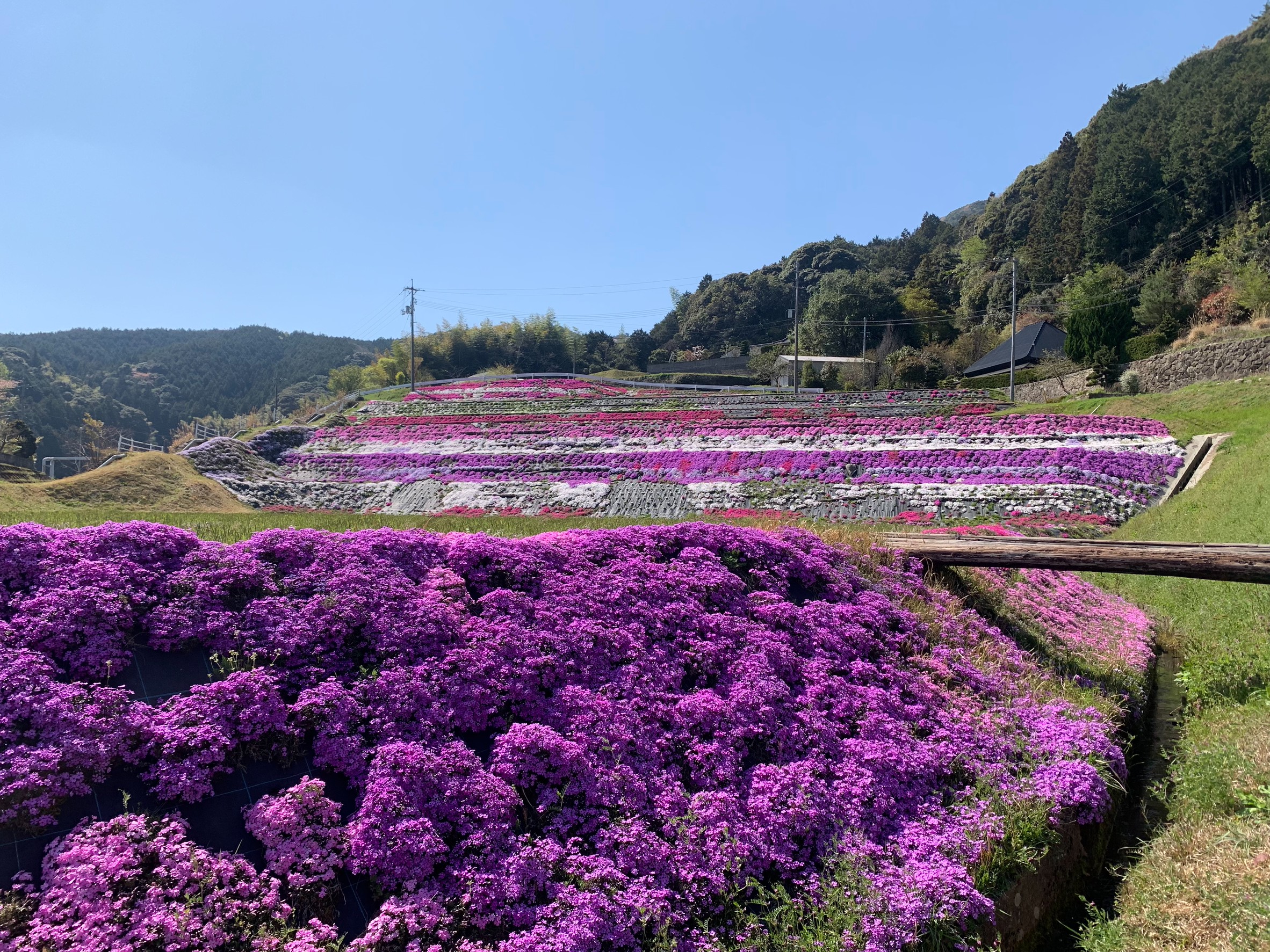 山口市と美祢市美東町を結ぶ国道435号線沿いの棚田に咲く、約1万株の芝桜。
