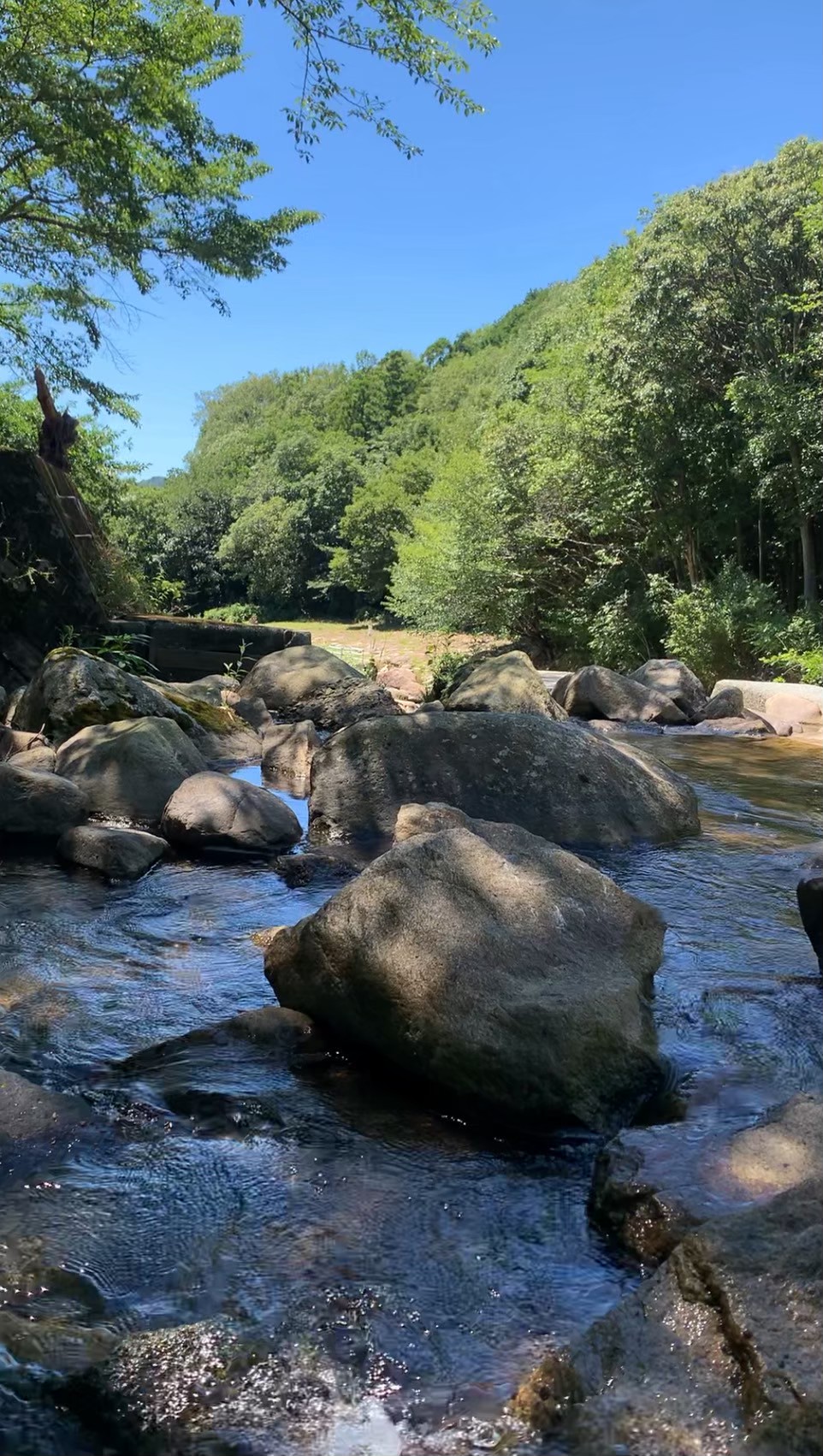 下流近くには浅いプール状の場所もあるため、子ども連れで水に触れながら涼を楽しめるおすすめの場所です。